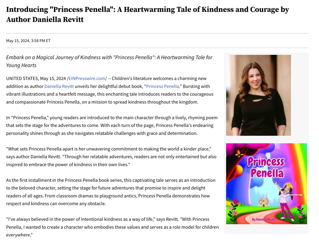 Princess Penella was recently featured on WFXR TV in a beautiful press release highlighting the book’s message of kindness, courage, and inclusion.